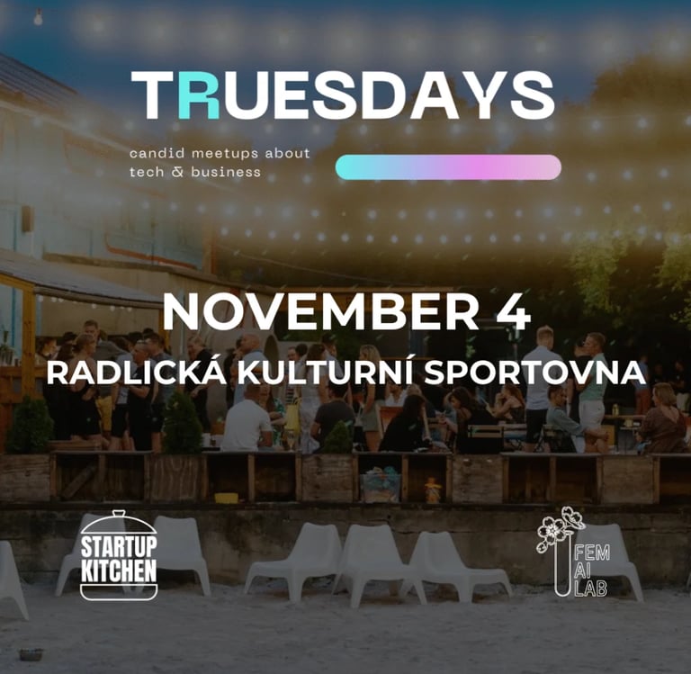This panel discussion is hosted by TRUESDAYS, Prague's premier monthly meetup for the tech and startup community. Together we’ll talk about what’s missing, what’s changing, and what’s next - and why diverse voices are essential for shaping the future of tech.